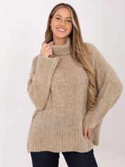 Beżowy długi sweter boucle z golfem