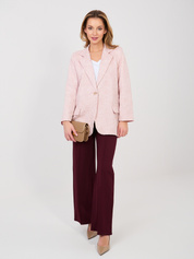 Pastelowa różowa damska marynarka z fakturowej tkaniny RUE PARIS