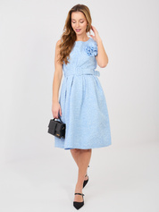 Pastelowa niebieska rozkloszowana sukienka z broszką RUE PARIS