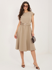 Ciemnobeżowa trapezowa sukienka z plisowaniem RUE PARIS