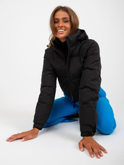 Hurtownia online Czarna krótka kurtka zimowa z kapturem