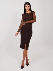Hurtownia online Brązowa midi spódnica basic z rozcięciem