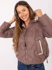 Ciemnobeżowa przejściowa kurtka ze ściągaczami