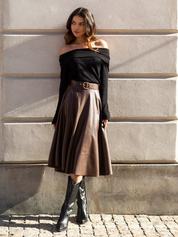 Hurtownia Ciemnobrązowa rozkloszowana spódnica z ekoskóry