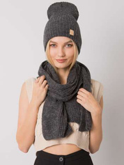 Ciemnoszary komplet zimowy czapka i szalik RUE PARIS