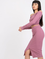 Brudnoróżowy prążkowany komplet ze spódnicą Lina RUE PARIS