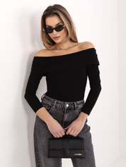 Czarna damska bluzka basic z dekoltem w łódkę RUE PARIS