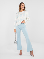 Pastelowe niebieskie spodnie dzwony bez zapięcia RUE PARIS