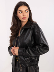 Czarna skórzana kurtka z kieszeniami RUE PARIS