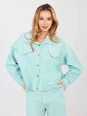 Miętowa jeansowa kurtka z imitacją kieszeni RUE PARIS