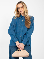 Niebieska jeansowa koszula ze ściągaczem na dole