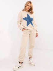 Hurt Beżowy dwuczęściowy komplet z jeansową wstawką