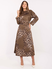 Khaki-beżowa midi spódnica z nadrukiem
