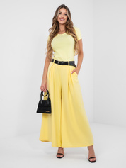 Pastelowe żółte spodnie z szeroką nogawką RUE PARIS