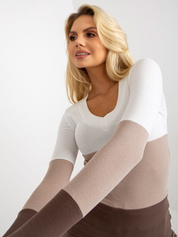 Hurt Biało-brązowa codzienna bluzka basic w prążek RUE PARIS