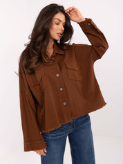 Ciemnobrązowa jeansowa kurtka z kieszeniami RUE PARIS