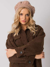 Ciemnobeżowa czapka damska z aplikacją