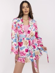 Ecru-niebieski komplet z marynarką o kroju kimono