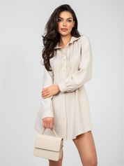 Ecru mini sukienka szmizjerka w paski RUE PARIS