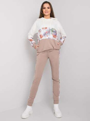 Ciemnobeżowy damski komplet z bluzą bez kaptura