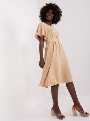 Hurtownia Beżowa sukienka na co dzień z okrągłym dekoltem