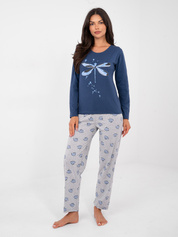 Brudnoniebieska dwuczęściowa piżama z nadrukiem
