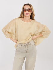 Beżowa wizytowa bluzka z okrągłym dekoltem