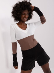 Hurt Ecru-czarna damska bluzka basic z dekoltem V