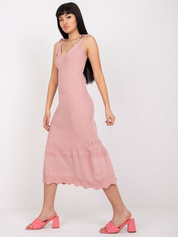 Brudnoróżowa sukienka na ramiączkach z dzianiny w prążki