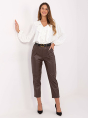 Ciemnobrązowe spodnie z ekoskóry z kieszeniami RUE PARIS