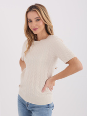 Jasnobeżowy damski sweter z krótkim rękawem