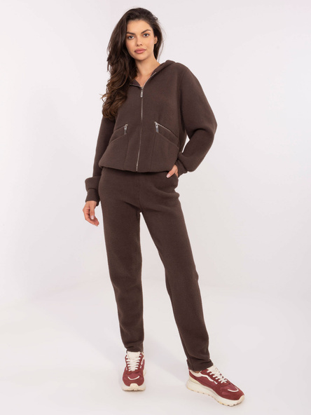 Brązowy swetrowy komplet z rozpinaną bluzą