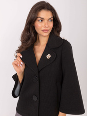 Czarny damski płaszcz z odpinaną broszką OCH BELLA