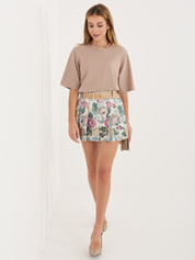 Brudnoróżowe spódnico-spodenki z brązowym paskiem