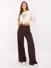 Czekoladowe szerokie spodnie basic z kieszeniami