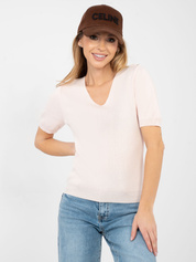 Ecru damski sweter z krótkim rękawem
