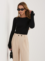Czarna prążkowana bluzka z dziurami na kciuki RUE PARIS