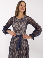 Granatowa wizytowa sukienka z wiązanym paskiem