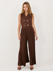 Ciemnobeżowy komplet z szerokimi spodniami RUE PARIS