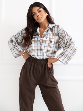 Jasnoniebieska damska koszula oversize w kratę